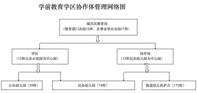 2013年以来针对全区学前教育量大、面宽、隶属关系复杂的现状,适时提出“以政府办园为示范,以企事业单位办园为补充,以民办托幼机构为主体”的学前教育发展思路,以充分发挥民办托幼机构在全地区的主体性作用,促进其普惠、优质、规范发展。推行三大举措,率先在全省实施管理体制改革。 举措一:建立网络化管理模式。率先在全省建立学前教育网络化管理模式,成立了12个幼儿园学区和13个民办托幼机构协作体,区域内各级各类托幼机构全部纳入网络化管理,搭建“教育局——学区(协作体)——托幼机构”三级监管、指导和服务网络,形成了“横向到边、纵向到底”覆盖全区各类学前教育机构的监管体系。通过公办园示范引领、中心园优质带动,做到了引领全辐射,监管全覆盖,有力推动了民办学前教育优质发展。 举措二:加大扶持力度。率先在西部地区对民办托幼机构实施“以奖代补”激励机制,四年来累计投入2982万元,先后对350所次的民办托幼机构实施“以奖代补”,奖补面达到100%,极大地提高了民办托幼机构的普惠覆盖率,整体提升了民办托幼机构规范办园的水平。 举措三:加大监管力度。率先在全省建立“街道幼儿托护点”模式,强化了政府的托底职能,有效规范了小型民办托幼机构保教行为,同时满足了流动人口及弱势群体子女安全入托需求。目前由各街道审批了172家街道幼儿托护点,经教育局备案后挂牌服务。 在网络化管理模式推行以来,各园园长作为本学区或协作体负责人,对学区和协作体内各类托幼机构的管理、保教、财务、卫生、安全等工作负有监管、检查、指导、帮扶等职责;中心园在协作体内发挥了管理、指导、示范和引领的作用,有力推进了各类托幼机构的依法办园,健康发展;实行的公办教师和民办教师之间的岗位交流机制,让民办园的幼儿享受到了与公办园同样的优质教育;以片区为单位进行的新秀评选、教师基本功比赛、教师自制玩教具评比、同课异构、学前教育宣传月系列活动、区域内教育教学业务联动,资源共享等活动,全面提升了民办教师的教学水平,强化了师资队伍。 全区学前教育规范发展、优质发展、普惠发展水平得到大幅提升,初步实现了“优园更优、弱园变强、消除劣园”的工作目标。目前,全区已建成省级示范园8所,分别占全省、全市示范园的15%和52%;市级示范(省级一类)和市级二类园31所,占到全市示范园的41%。学前三年、两年、一年入园率已分别达到75.5%、90%、96.5%,比2012年分别提高了2.3、4.2、3.3个百分点。城关区学前教育所做的工作得到了教育部的认可,城关区被确定 为全省唯一“十二五”国家级公关课题《普惠性民办幼儿园政策研究》的项目区,先后在深圳、上海、成都、宁波等地召开的项目会议上进行专题交流;城关区教育局被省教育厅确定为舟曲县“重建更美好”早期教育项目单位,省教育厅以城关地区优秀园长和骨干教师组成唯一一支省级学前教育技术支持团队,城关学前教育作为教育改革发展的排头兵,站在了全省学前教育改革发展的最前沿。 实践成效:区保育院学区的伏龙坪幼儿园在区保育院指导下,环境创设、功能室活动在体现环境对孩子的教育价值上得到了幼儿的喜欢、家长的认可,被评为市级三类幼儿园;兰空学区指导锦华东湖幼儿园落实“尊重孩子权利,科学保教幼儿”办园宗旨,在区角活动、环境创设、玩教具制作等方面逐步形成了本园特色,还开发了园本课程,今年已申报了省级示范性幼儿园;五泉幼儿园学区的天庆幼儿园以美工为特色,拓展园本课程,取得了明显效果;上川金鑫、英利、兰海惠安等托护点在协作体中心园的指导下,各方面也逐渐规范,办园有了较大的提升,今年通过审批升级为民办幼儿园。 2016年7月7日至8日,区教育局组织全区12个学区中心园、13个协作体、172所托护点的800多名园长与教师分为十个批次,进行了教师自制玩教具获奖作品观摩展示,共有200多件作品获奖,其中民办教师的获奖比例占总获奖人数的47%。民办园家长王先生说:“多搞一些这样的活动,也是我们家长希望看到的,现在在公办幼儿园的带领下,民办幼儿园也越来越规范,作为民办园的家长,我们把孩子放在那里也很放心。” 城关区博雅华星幼儿园(民办园)园长王安兰说:民办园都想把自己的幼儿园办好,以前自己闭门造车,低着头干,见不到成效,现在好了,有了城关区教育局进行的专业指导,尤其每年还对我们托幼机构的负责人进行专门的培训,让我们了解最新的教育动态、更新了自己的教育观念,明确自己的办园理念,我们感到有主心骨了。我们相信,在教育局的扶持指导下,我们民办幼儿园一定会与公办园尽快缩小差距,越办越好!