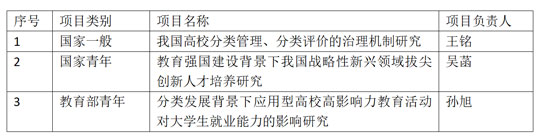 此次立项课题涵盖国家一般、教育部青年、国家青年等多个类别,研究方向聚焦教育高质量发展核心议题,包括高校分类管理治理机制、大学生就业能力、拔尖创新人才培养等关键领域,充分彰显了我所在教育科学研究领域的扎实功底与前瞻视野。
