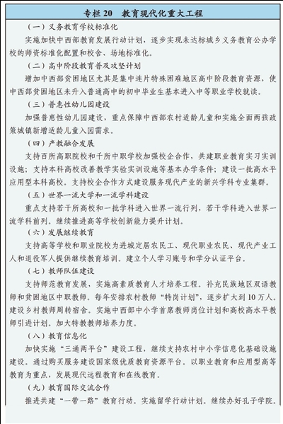 “十三五”规划纲要:提出提升全民教育水平 推进教育现代化
