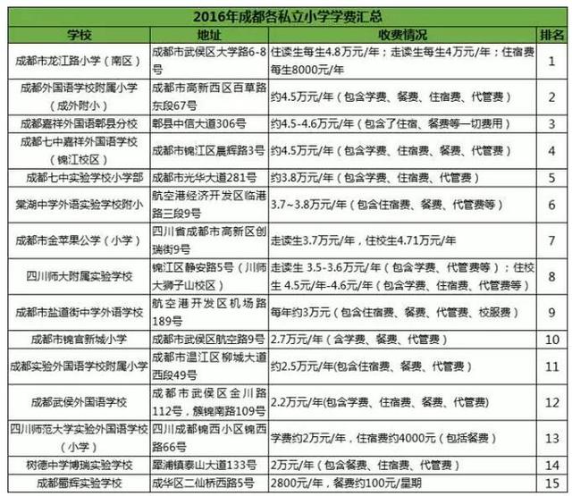 2016年成都私立小学学费大汇总 看看到底有多贵